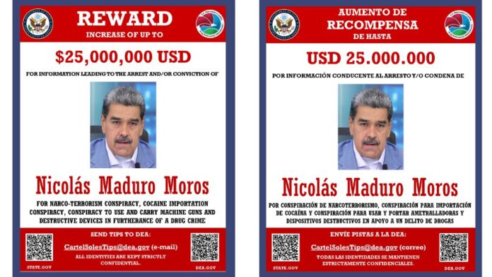 En un movimiento que intensifica la presión contra el gobierno venezolano, la Administración de Control de Drogas de Estados Unidos (DEA) ratificó este martes la designación del Cártel de los Soles como organización terrorista y anunció una recompensa de $25 millones de dólares por información que conduzca a la captura del presidente Nicolás Maduro, así como de sus aliados Diosdado Cabello y Vladimir Padrino López.
