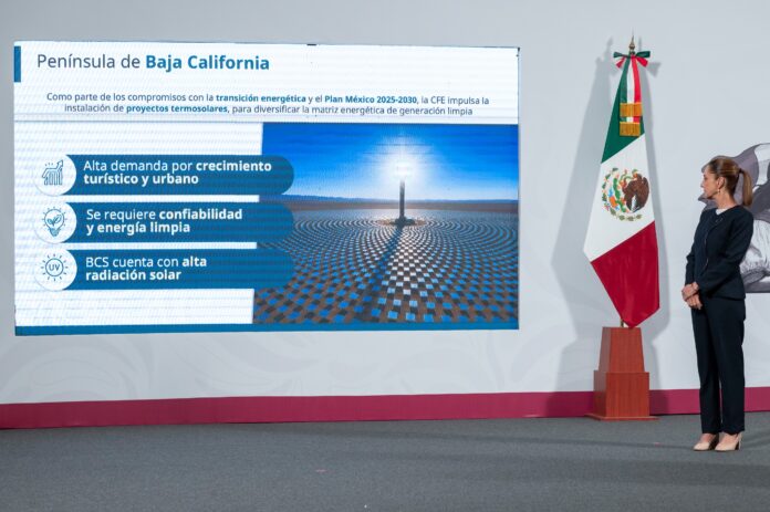 BAJA CALIFORNIA SUR.- En un anuncio que marca un punto de inflexión en la política energética nacional, la presidenta Claudia Sheinbaum reveló durante su Mañanera del Pueblo de este 26 de agosto un proyecto visionario: la construcción de las dos primeras plantas de energía termosolar de México en Baja California Sur. Este ambicioso plan, parte del Programa de Expansión del Sistema Eléctrico Nacional 2025-2030, posicionará al país a la vanguardia de las energías renovables en América Latina.
