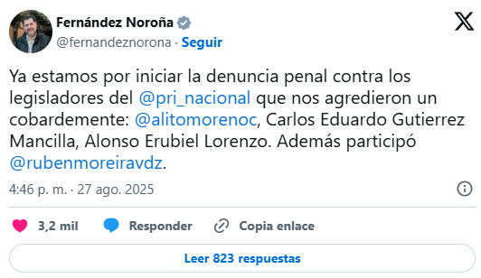 Pero la acusación va más allá de un arranque de ira. Noroña aseguró que la agresión fue premeditada. “Toda la sesión estuvieron provocando”, explicó, detallando una estrategia orquestada para cerrarle el paso y permitir que Moreno lo golpeara, con la supuesta intención de demostrar superioridad física. El proceso legal que se avecina es complejo: la FGR deberá recibir la denuncia y, de encontrar elementos, solicitar formalmente al Senado el desafuero de los legisladores imputados para que puedan ser procesados penalmente. Un capítulo negro que abre un frente jurídico sin precedentes en la política mexicana.
