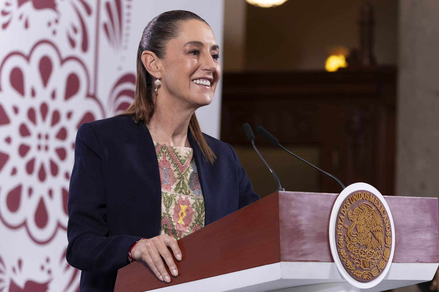 Cuauhtémoc, Ciudad de México. 29 de septiembre 2025. La presidenta constitucional de los Estados Unidos Mexicanos, la Doctora Claudia Sheinbaum Pardo en conferencia de prensa matutina en el salón de la Tesorería de Palacio Nacional. La acompañan: Ariadna Montiel, secretaria de Bienestar; Efraín Morales López, Director General de la Comisión Nacional del Agua (CONAGUA); Alicia Bárcena, secretaria de Medio Ambiente y Recursos Naturales; Marath Bolaños López, secretario del Trabajo y Previsión Social; Pamela López, Directora de la Escuela es Nuestra; Julia Álvarez Icaza Ramírez, secretaria del Medio Ambiente de la Ciudad de México; Iván Escalante, Procurador Federal del Consumidor (Profeco); Diana Aurora Correa, subdirectora de Diseño Digital y Medios Sociales en la Unidad de Memoria Histórica. Foto: Juan Carlos Buenrostro/Presidencia