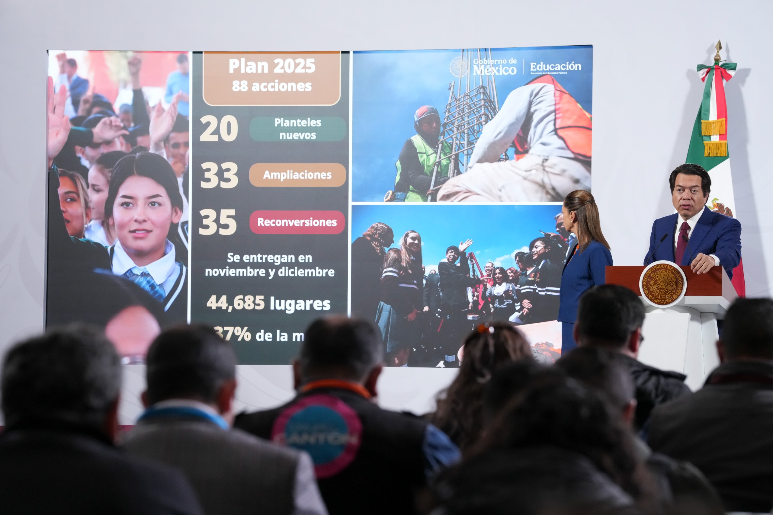 Los números del Plan 2025 para educación media superior son contundentes: 88 acciones concretas distribuidas en 20 planteles educativos nuevos, 33 ampliaciones y 35 reconversiones. Solo en noviembre y diciembre de este año se entregarán 44,685 lugares, alcanzando el 37% de la meta total.