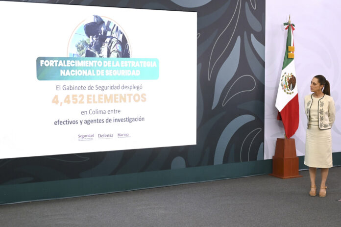El gabinete de seguridad reporta la captura de operadores de los cárteles de Sinaloa y Jalisco, el decomiso de 271 kilos de fentanilo y más de 8 toneladas de cocaína en Manzanillo, en el marco de la Estrategia Nacional de Seguridad.